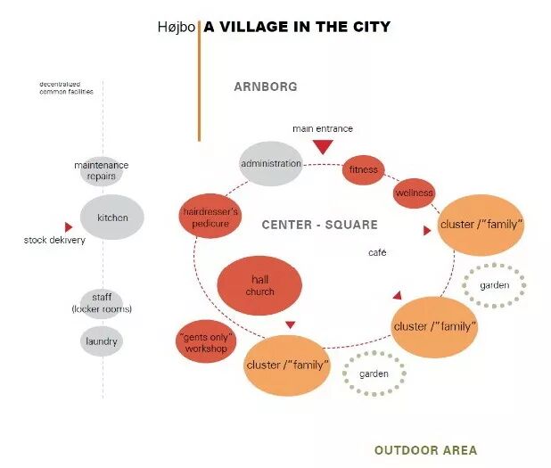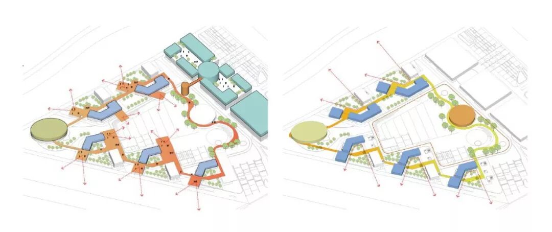 • 第2个举措是把“配套综合体”变成许多“单体”。让功能模块从综合体解放出来,拥有自己的“地址”,从而形成类村落化甚至城市化的空间形态