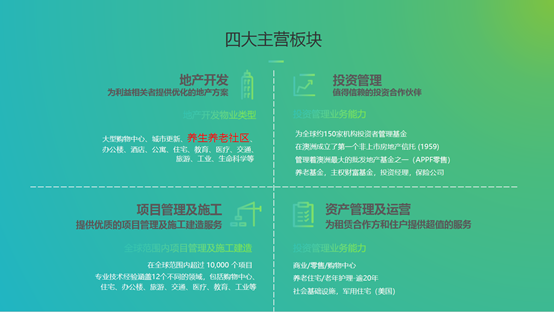 开篇我们提到联实是澳洲养生享老社区领域最大的业主、运营方和开发商,但它其实也是全球领先的跨国地产开发和工程管理集团,在世界范围内参与完成了悉尼歌剧院、吉隆坡双子塔、Trump Tower 等我们熟知的地标性建筑项目。同时,“地产开发、投资管理、项目管理及施工、资产管理及运营”四大主营板块业务也练就了联实的核心优势以及不断为业主提供创新生活解决方案的能力。