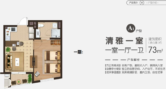 逸浦荟的公寓户型大致分为5种:“73㎡一室一厅一卫”A1户型、“110㎡二室两厅一卫”B1户型、“110㎡二室两厅一卫”B2户型、“167㎡三室两厅两卫”C1户型和“159㎡三室两厅两卫”C2户型,这些完全可以满足绝大多数客户的入住需求。