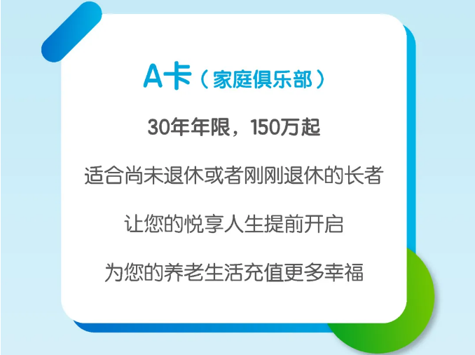 逸浦荟的会员卡分为三种,对应着不同年限和不同房型:A卡,30年年限、150万元起,适合尚未退休或刚刚退休的长者;B卡,15年年限、60万元起,适合正在畅享晚年的长者;C卡,1-2年年限、1.3万元/月起,适合想先行体验社区的长者。服务费一人/5800元/月,两人/4600元/月。购买会员卡的客户可以拎包入住,针对首开客户还提供餐厅抵用券、服务费赠送以及澳洲体验游等特权。
