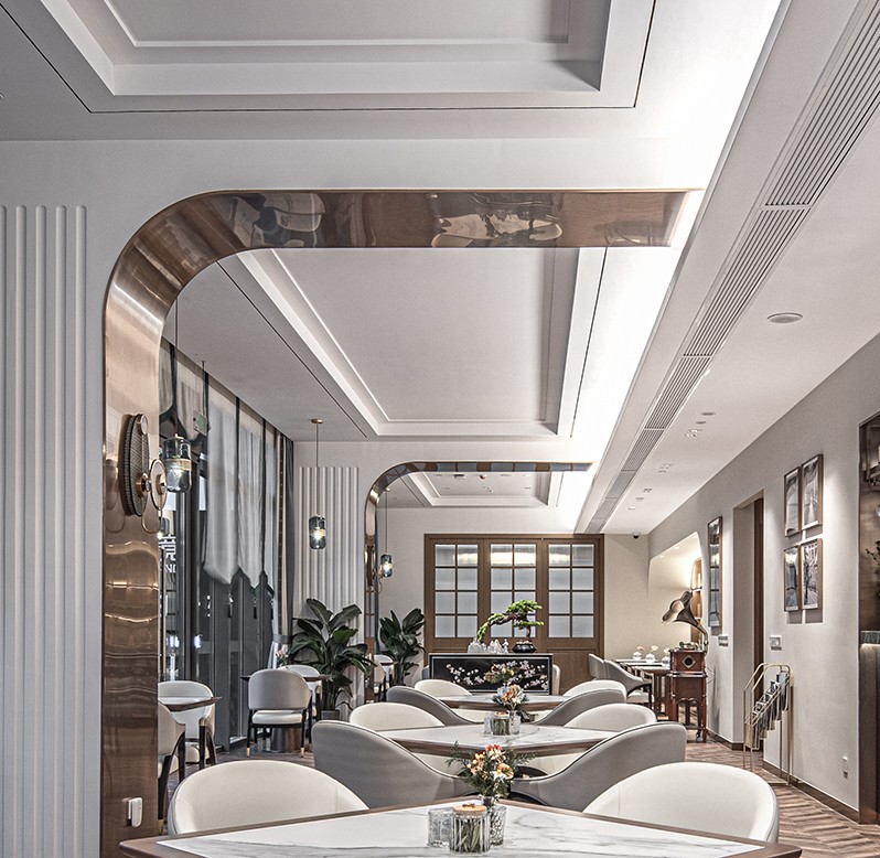 项目目标群体为上海中高端人士,基于适用人群的文化背景与身份,设计将中西方元素融合在同一空间中,营造一种高级感的海派风格;整体硬装造型上,多用弧形设计与硬朗线条相结合的做法;在家具选择上,注重中西方元素的混合搭配使用,营造和谐而与众不同的环境氛围;颜色搭配上,选择较为丰富、饱和度较高的颜色,实现多样性。 本案设计一改传统养老空间的“沉稳”风格,在设计上选择更加活跃,清新的氛围,突破定式,打造优雅的养老空间