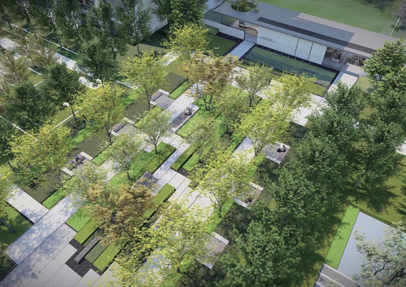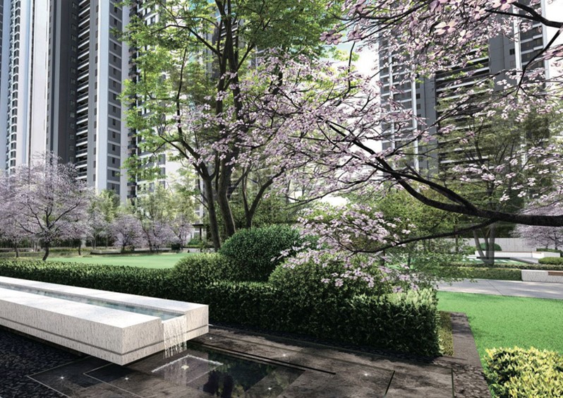 园林设计风格延续建筑所展现的均衡与对称感,将挺拔俊朗 的纵向线条横向延展,设计中在空间上拉长序列感,突出仪式感与尊贵感。 利用L型中庭缔造双轴线景观,独享的双视野布局,大大提 升楼栋的溢价空间;在轴线节点控制中,纵向主轴结合归家 动线,强调礼宾式尊贵感,由仪式性空间向公园化体系逐渐过渡;横向主轴则更多地注入生活化节点,由礼仪主轴向生 活功能空间逐渐过渡。 我们希望通过线性手法,利用简约而精致的元素,营造舒缓、平和、真实、生活化的居所空间,引导人使用,促使人驻足欣赏。