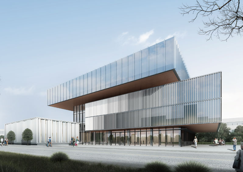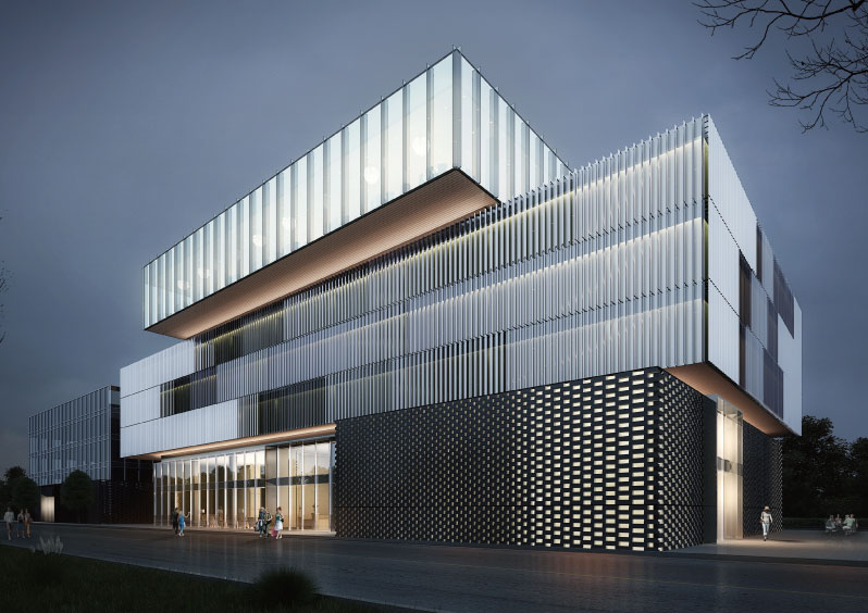豫发产业城项目位于河南省商丘市,以科技创新为内生驱动,以商会展为服务平台,布局4大功能板块,形成7大核心产业,通过8大平台进行产业运营,产城融合,打造宜业、宜居的产业城。本案作为启动区展示中心,为了呼应产业城科技创新主题,力求运用简洁精练的现代建筑语汇,通过富有张力的悬挑来营造个性的展示空间,直观反映未来产业城的形象气质。